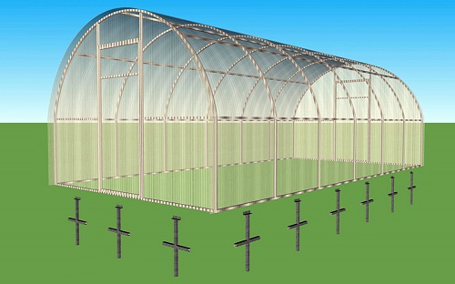 Обеспечивает устойчивость к ветровым и снеговым нагрузкам за счёт надёжного закрепления каркаса, служит в качестве якоря теплицы;